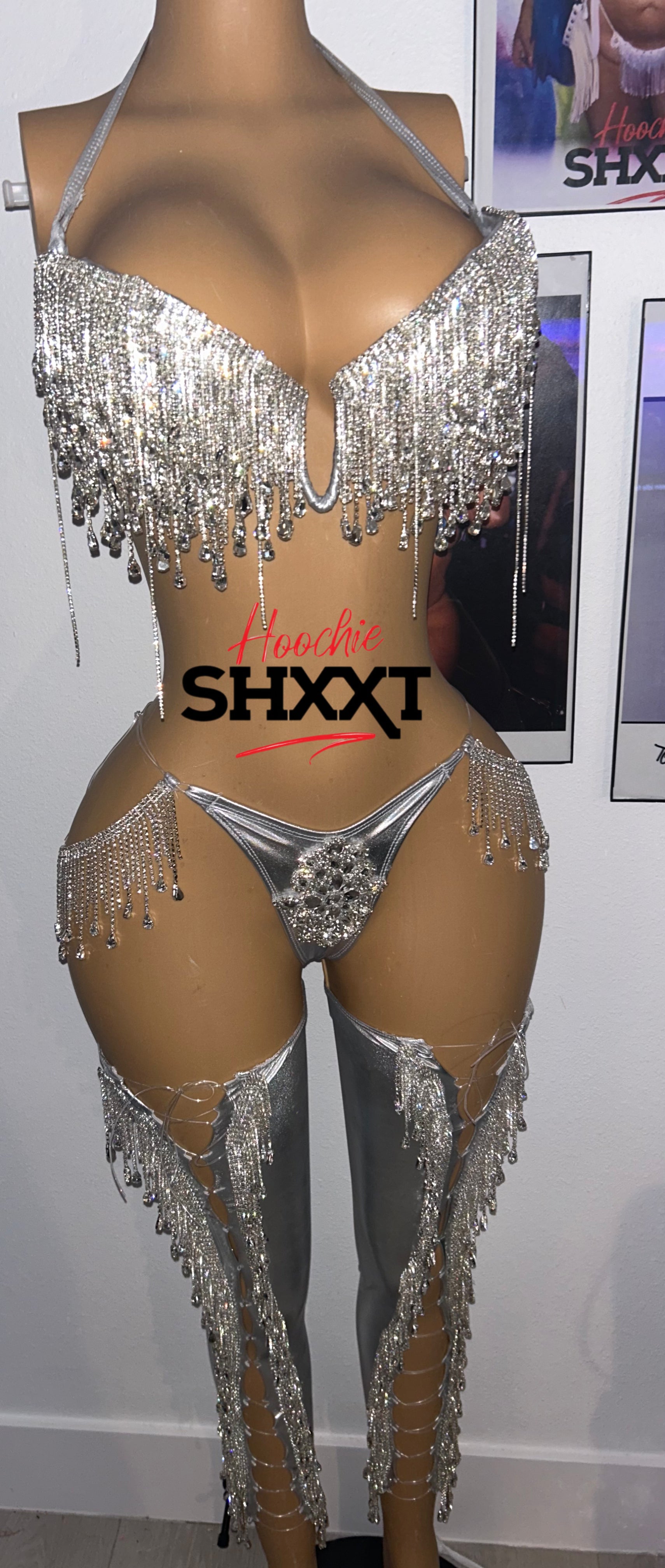 All eyes on you. This silver set drips in rhinestones and attitude—perfect for the baddie who moves like money and looks like luxury.